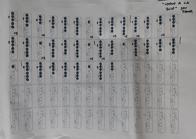 My 1st draft : a manual sax tablature paper+pen